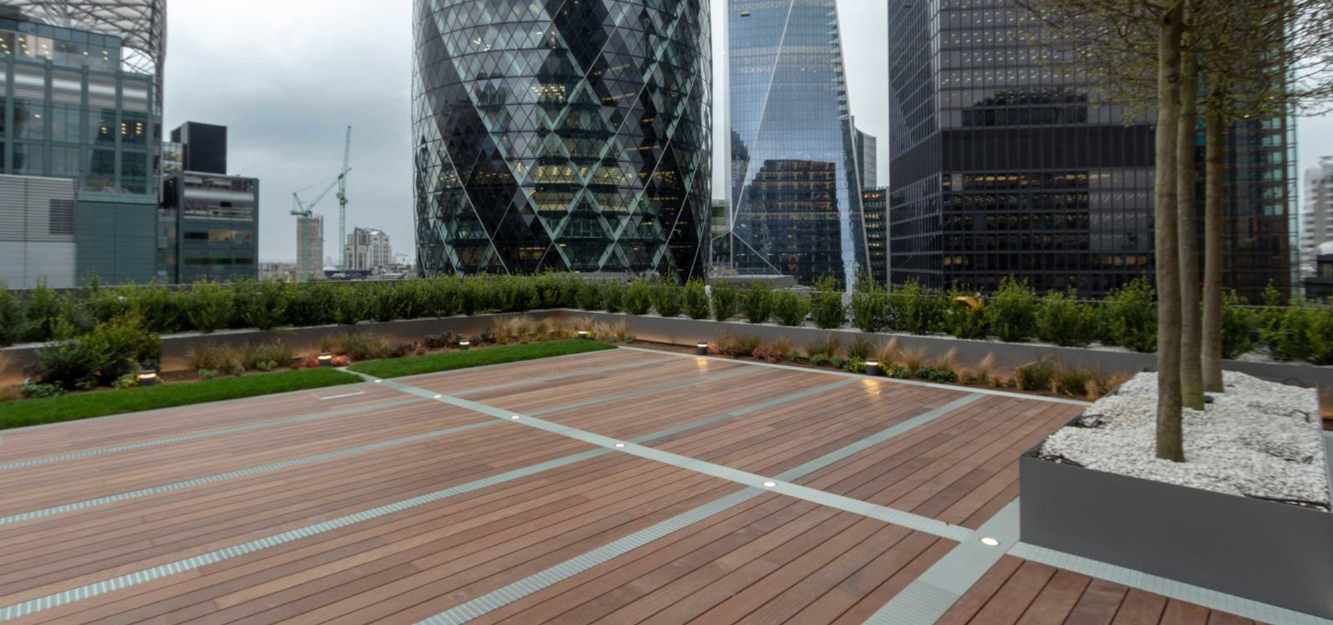 The stunning roof top relaxation space blends the tones of the natural IPE timber decking with the contrasting green landscaping areas. A mixed tenure project that included the planter and lawn garden to be also installed on pedestals creating a stunning landscaped roof terrace overlooking London’s cityscape. Buzon were excited to be part of such a prestigious development in the heart of London.